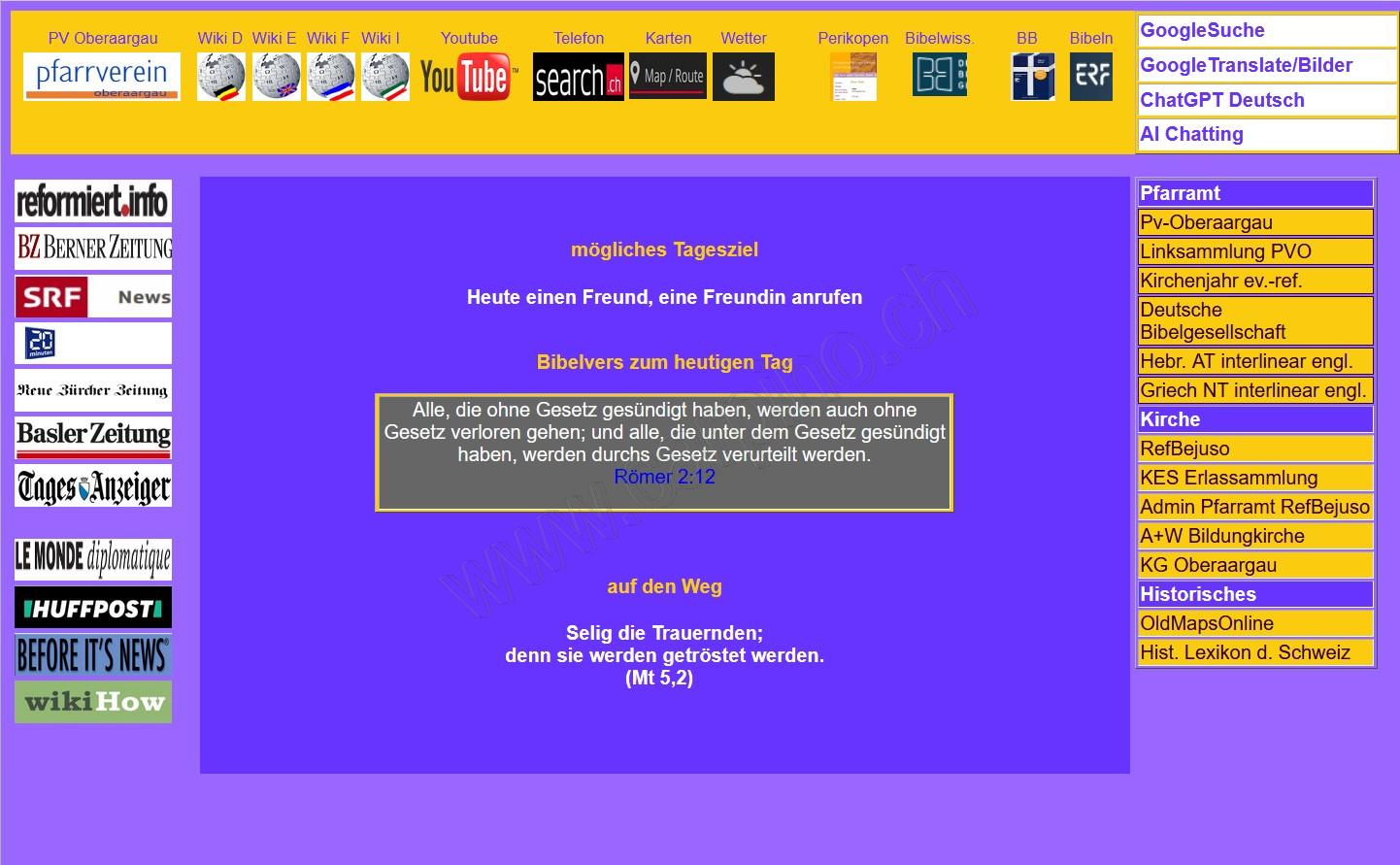 Die Startseite des PVO für Ihren Browser verfügt über bequeme direkte Links zu folgenden Seiten:
